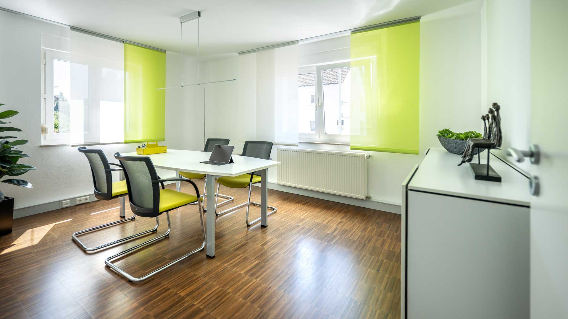 - ein Arbeitsplatz in modernen und freundlichen Räumen
